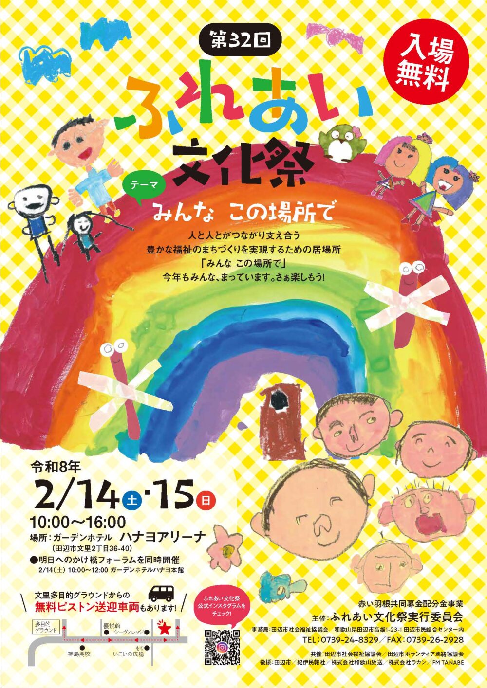 令和8年2月14日(土)、15日(日)、田辺市社会福祉協議会主催の「第32回ふれあい文化祭」が