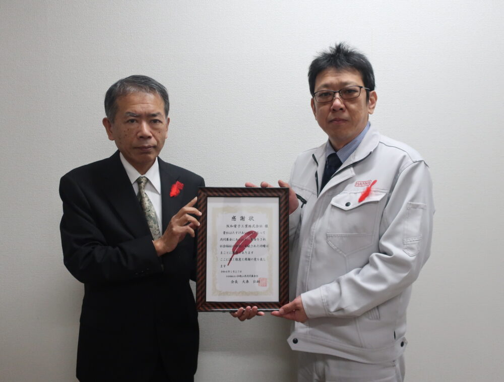 阪和電子工業株式会社様(本社:和歌山市)より社会貢献活動の一環として、今年度も「赤い羽根共同募金」に
